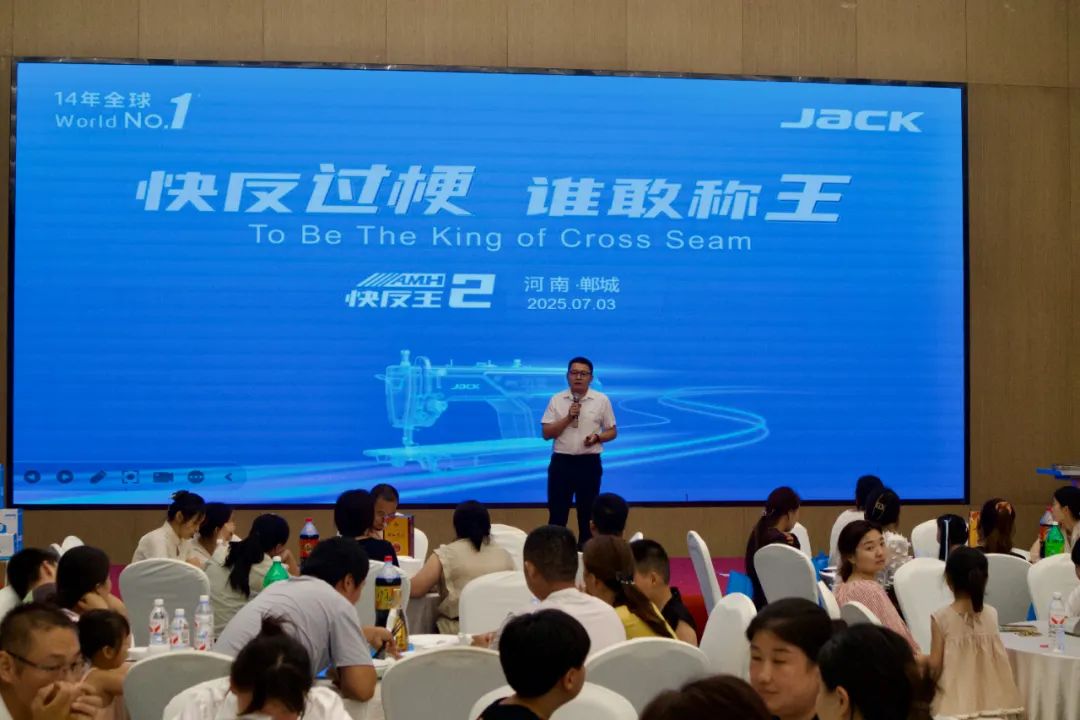 大会伊始,杰克科技营销军团中部战区销售经理王勇作快反王2发布。他表示:"快反王2是杰克对小单快反需求的又一次极致回应,标志着服装智能制造进入新阶段。"