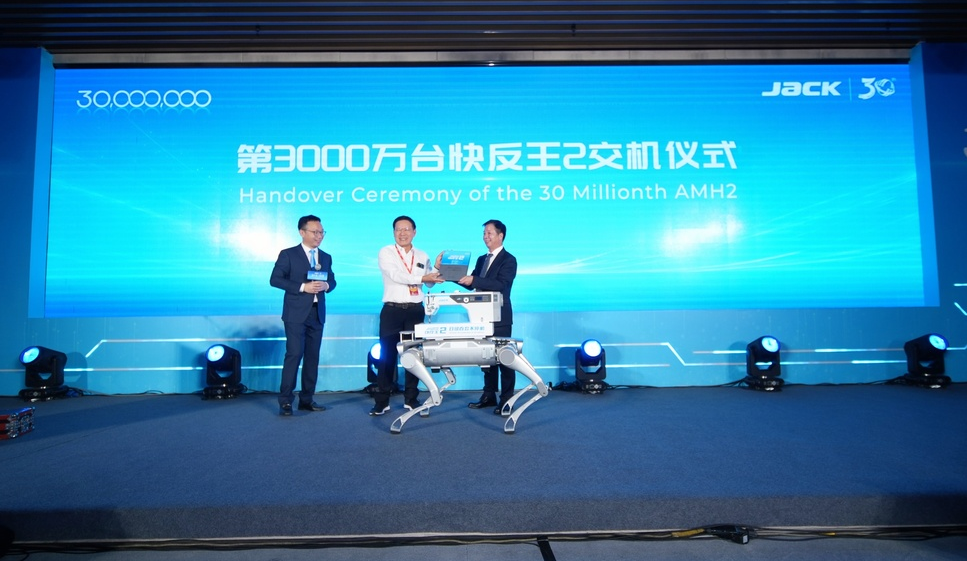 7月18日,时逢杰克科技30周年生日,杰克3000万台智能缝纫机下线仪式在椒江总部隆重举行。